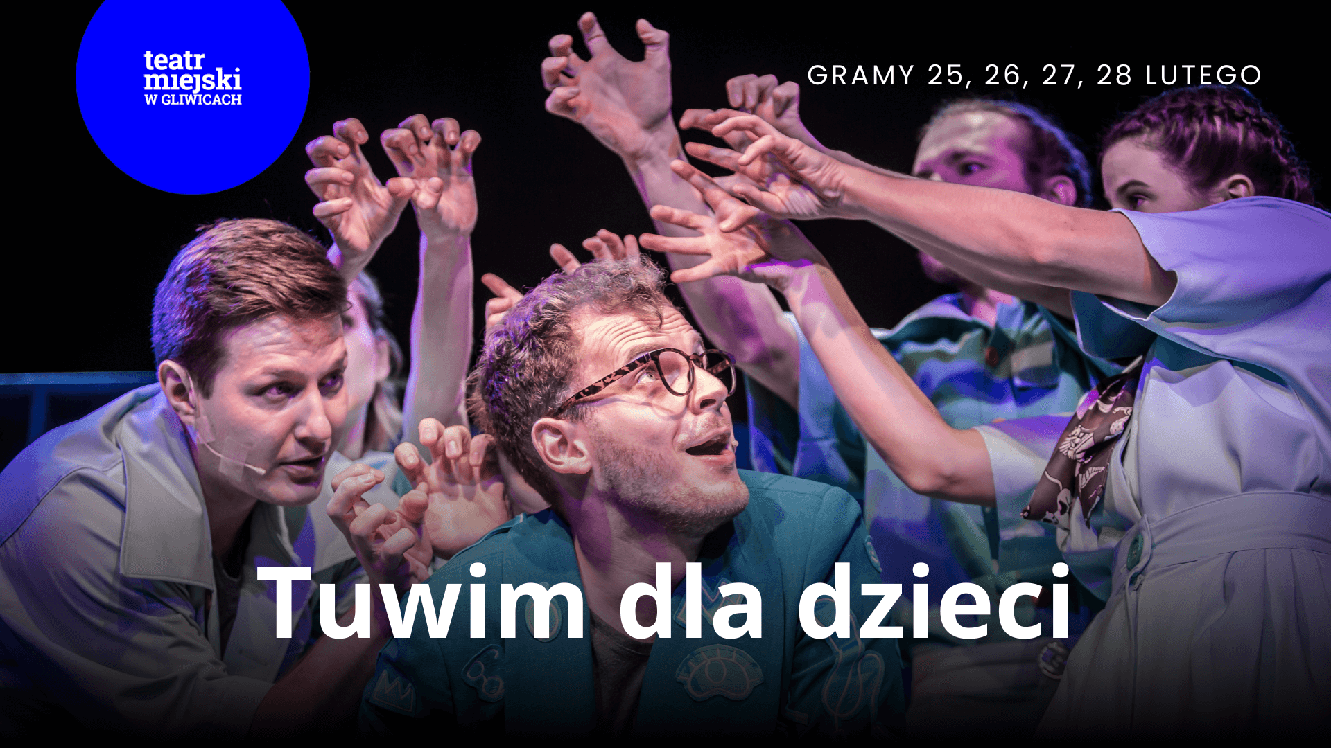 „Tuwim dla dzieci” w Teatrze Miejskim w Gliwicach   to kompilacja znanych, mniej znanych i zupełnie zapomnianych wierszy dla dzieci naszego znakomitego poety. To spektakl bardzo muzyczny, w którym widzowie będą – dosłownie! – wciągani w teatralną przygodę. Zabieramy was do czarodziejskiego gabinetu poety, w którym słowa, rymy i wiersze ubrane zostaną w bogatą plastykę teatru masek, lalek i cieni.