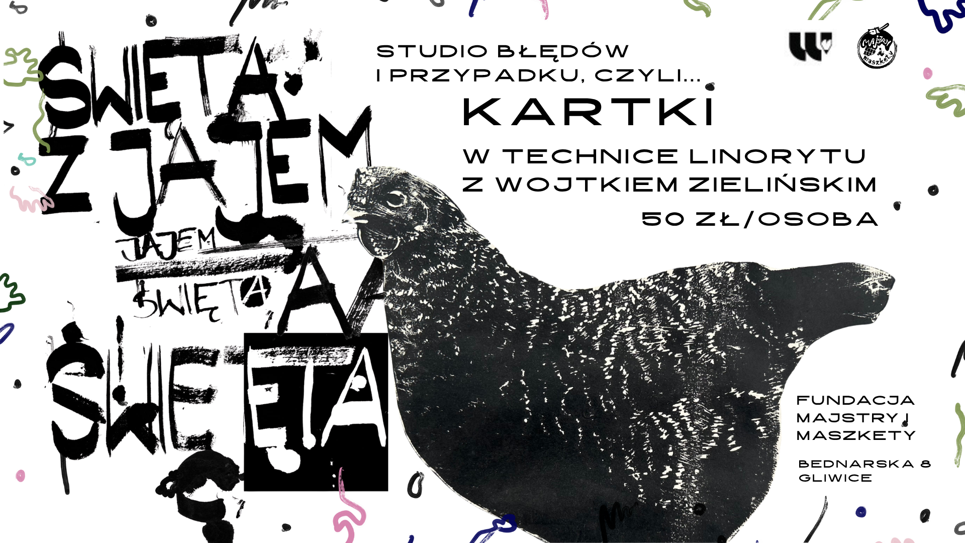 Pierwsze spotkanie z cyklu "Studio Błędów i Przypadku", na którym stworzymy własne kartki świąteczne w technice linorytu poprowadzi Wojtek Zieliński (słynący z niezwykłego poczucia humoru i wyjątkowej kreski).