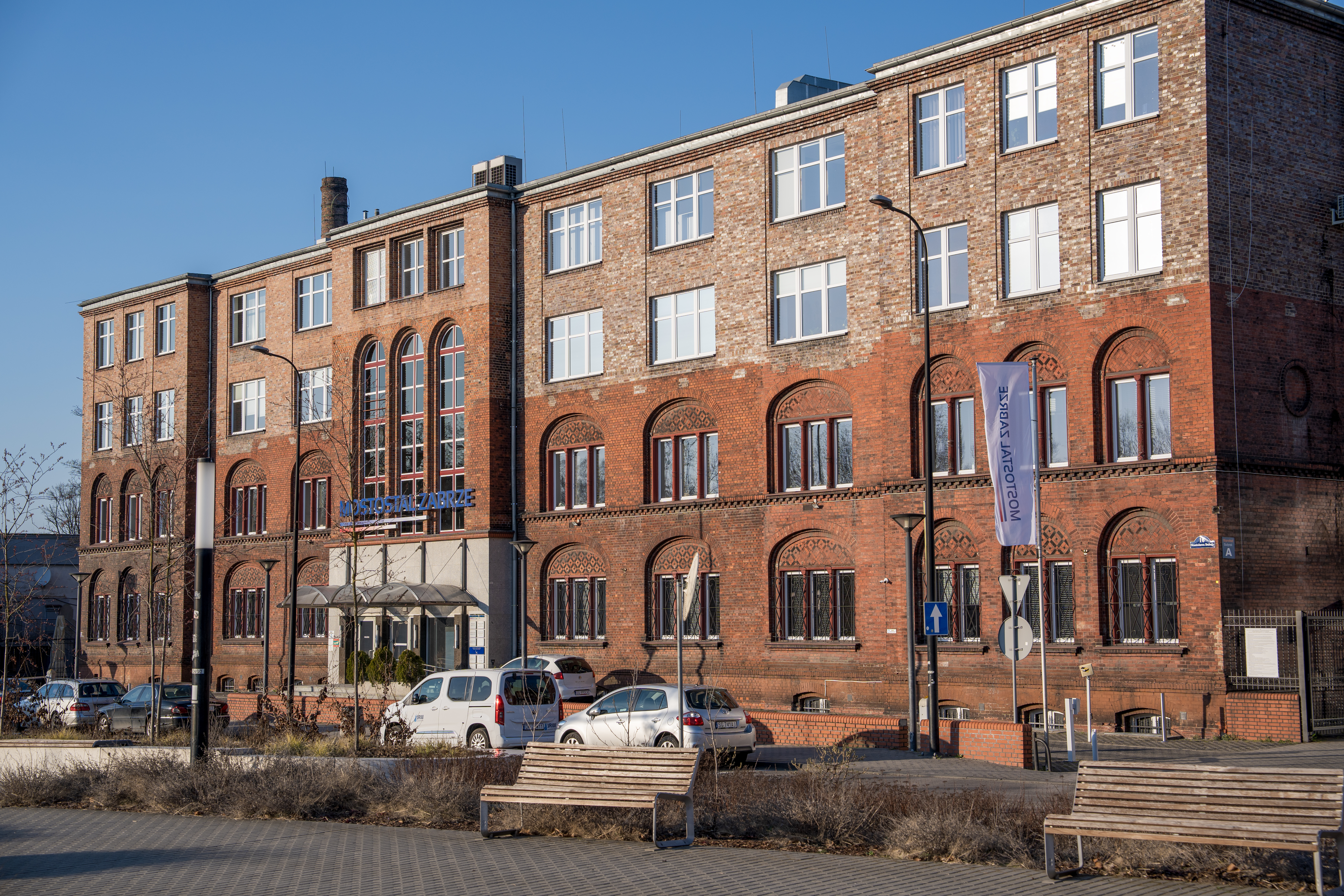 Historia samego budynku przy dawnej Fabrikstraβe 16 zaczyna się w roku 1887, kiedy to rozpoczęła się jego budowa według projektu znanego gliwickiego architekta Salomona Lubowskiego. W związku z rosnącymi i dynamicznie zmieniającymi się potrzebami kolejnych właścicieli na przestrzeni dziesięcioleci budynek przy Fabrikstraβe był poddawany wielu modernizacjom. Stopniowo rozbudowywano jego skrzydła oraz zwiększano liczbę kondygnacji. W podziemiach gmachu zlokalizowano skarbiec z wrotami o grubości blisko 40 cm, a także schron przeciwlotniczy, zbudowany w latach 40. XX wieku.